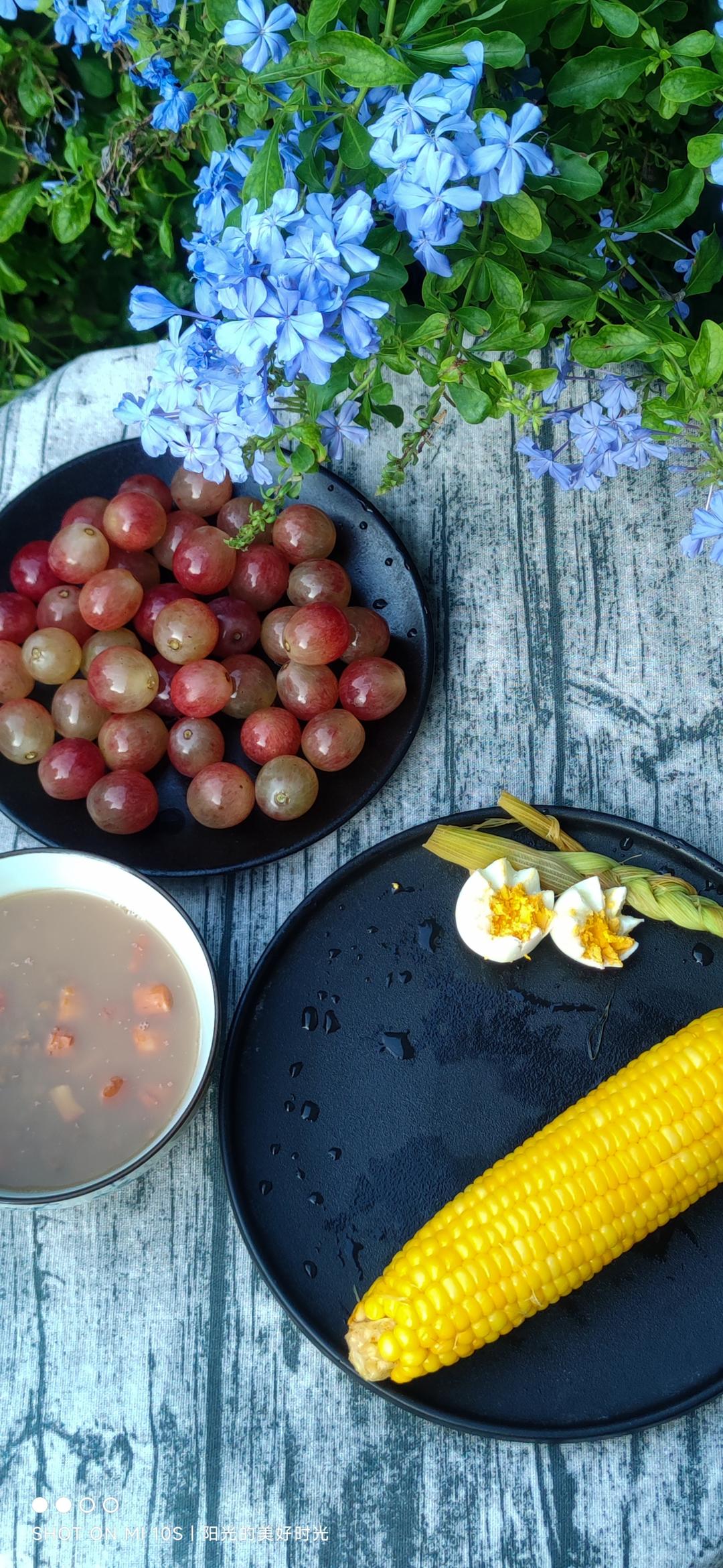 早,打包回来的驴火配西红柿,加几个葡萄甜甜嘴。