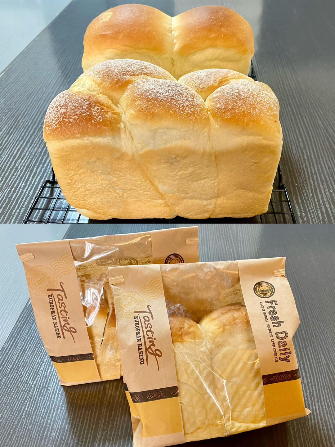 烤两个吐司,其中一个里面卷了葡萄干,绵软拉丝特别好。