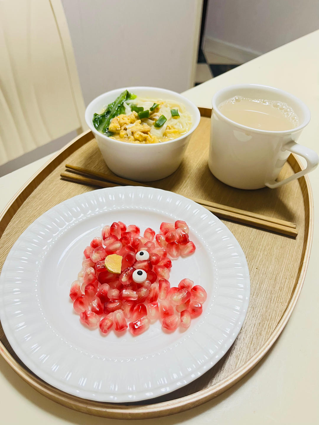 鸡蛋面+豆浆+石榴