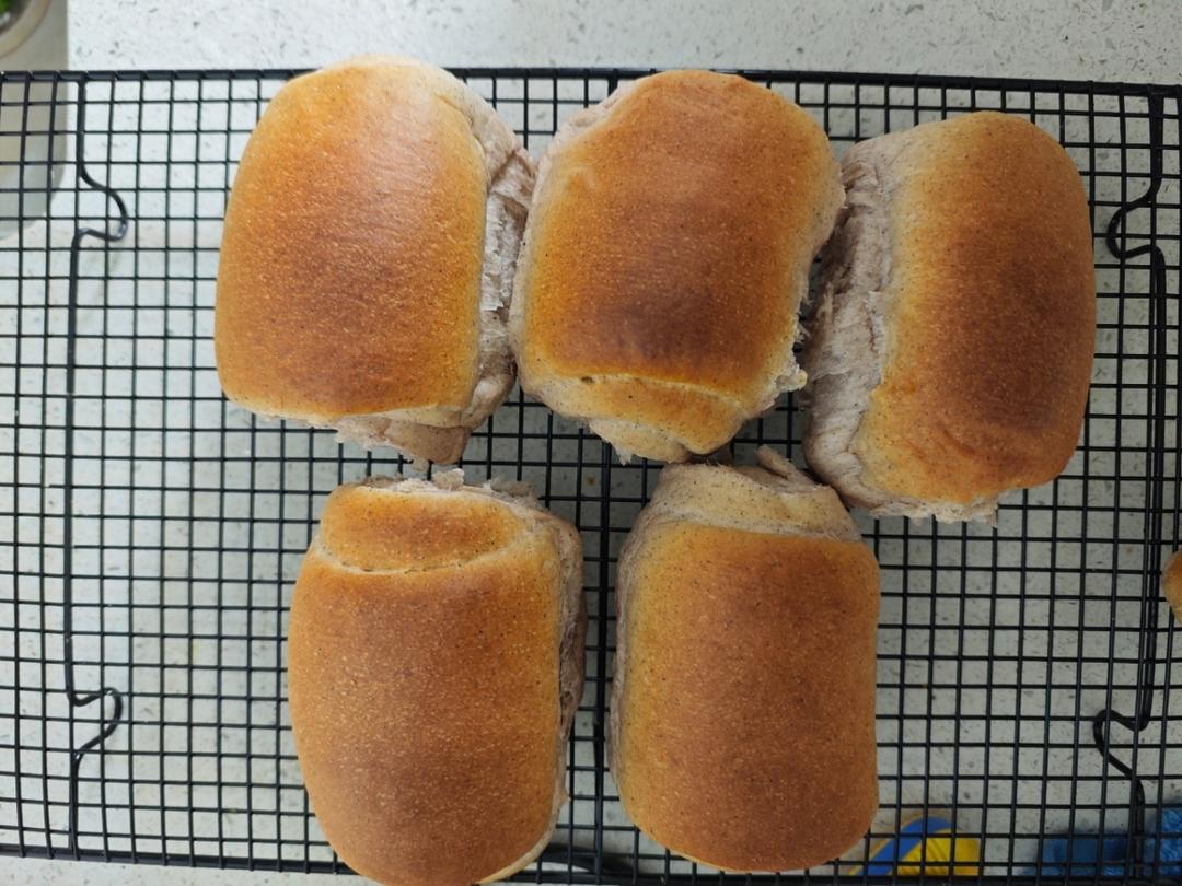 配方里的水换成牛奶,然后在冰箱里水合了两天,今晚抽时间拿出来做的。追求速度没用吐司盒,...