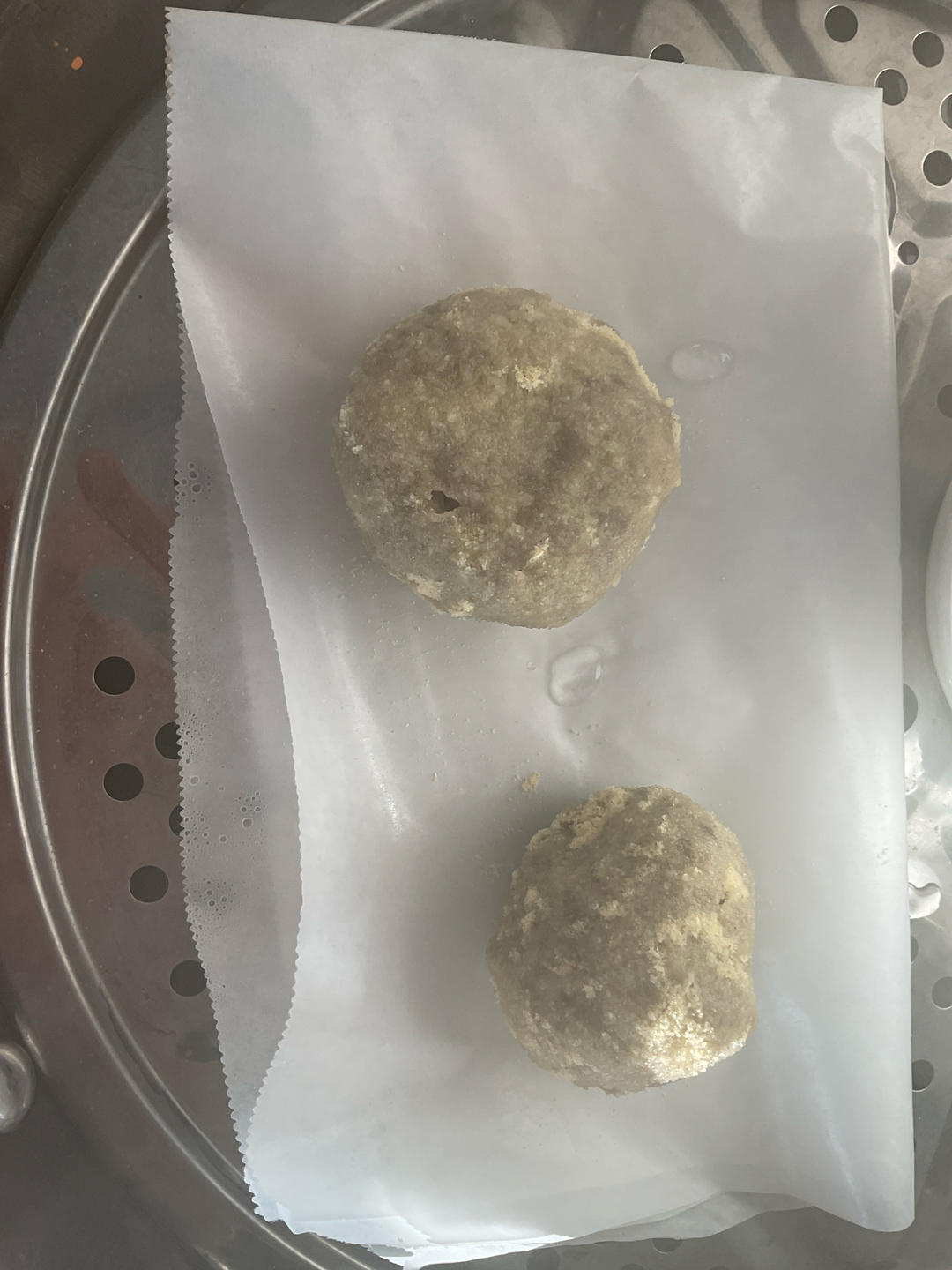 绿豆沙版的玉米粉豆包,其中一个还包了feta芝士🧀