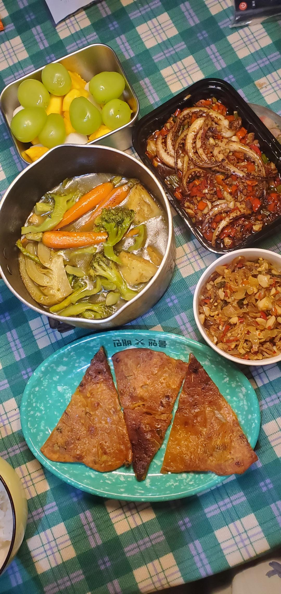 吃了好几顿,冰箱里的东西也没见下去。不过总归还是稳步推进的,欣慰了许多。今天这顿吃湘菜外卖剩菜+好侍椰香绿咖喱酱初体验+...