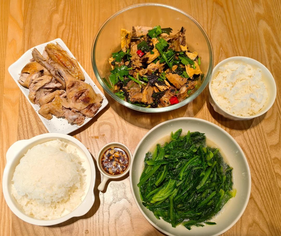 广西紫苏捞鸭,白切鸭,水煮油麦菜