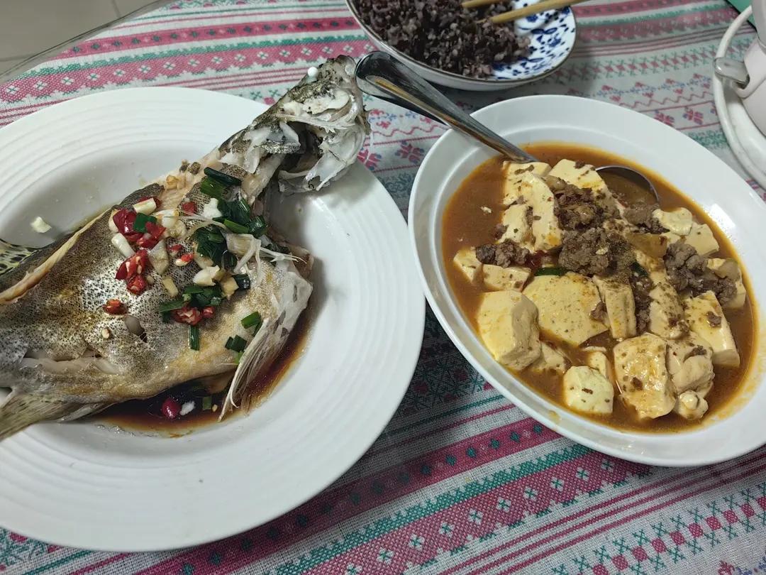 又给pepe上新菜了,蒸桂鱼,肉沫豆腐,杂粮饭