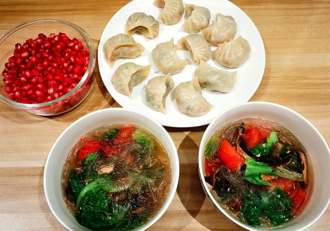 素蒸饺🥟🥟蕃茄粉丝汤,软籽石榴!
