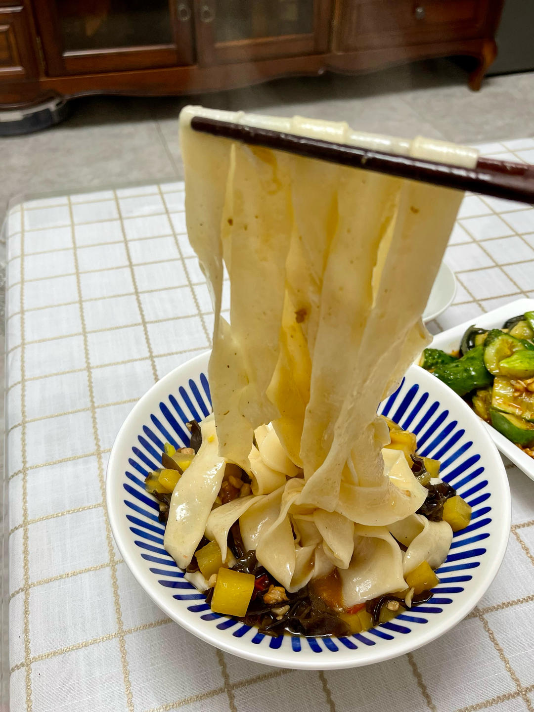 拉条子,凉拌黄瓜皮蛋,凉拌小苦菜