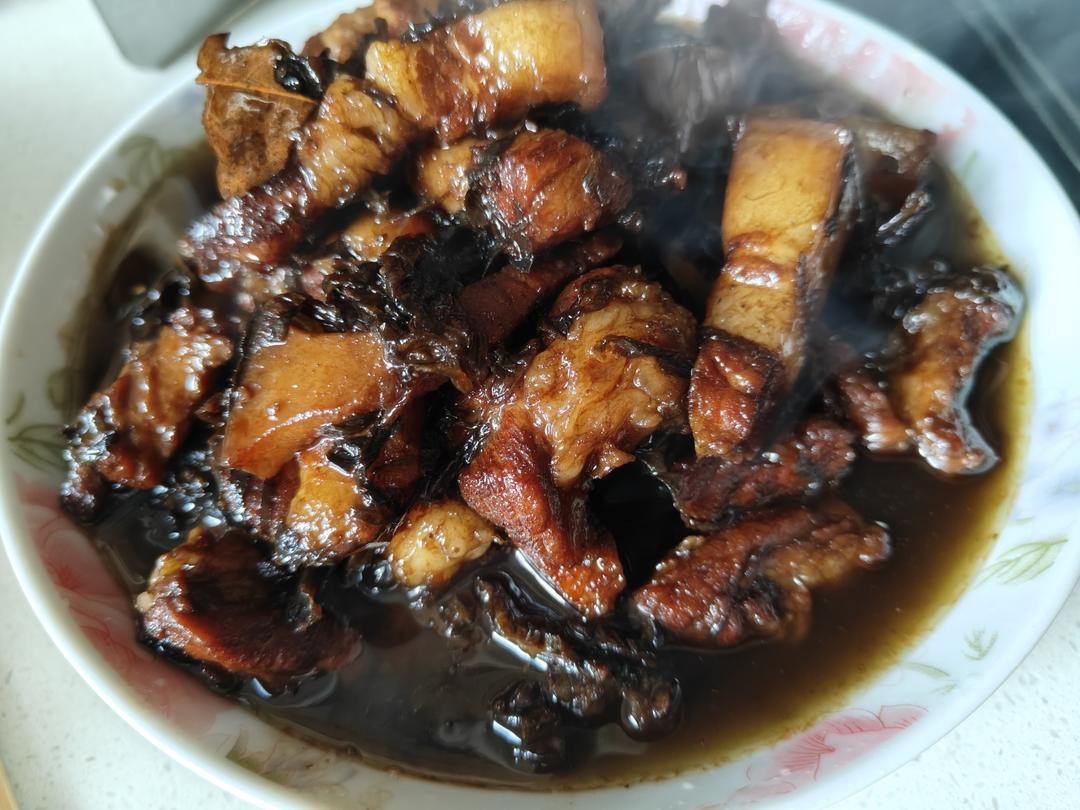 今日午餐烤牛肋条和豌豆尖,好吃。