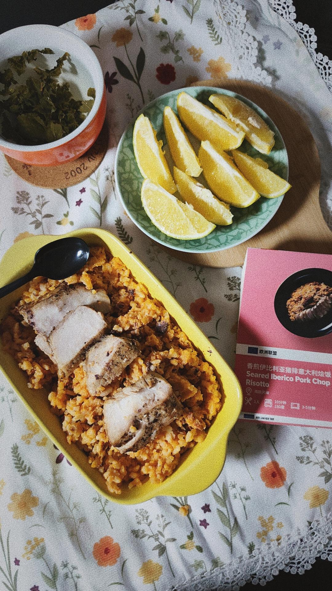 🈶幸收到下厨房发来的欧盟秋冬餐盒,南欧风味的“香煎🇪🇸伊比利亚猪排意大利🇮🇹烩饭”。