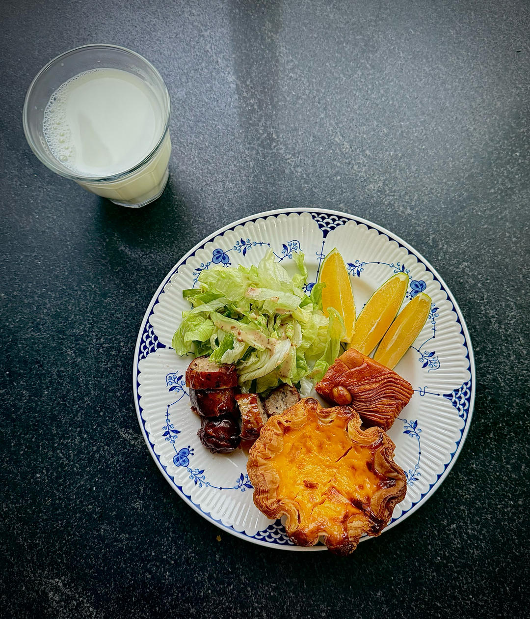 蛋挞➕焦糖夏威夷➕烤肠➕生菜➕橙子🍊