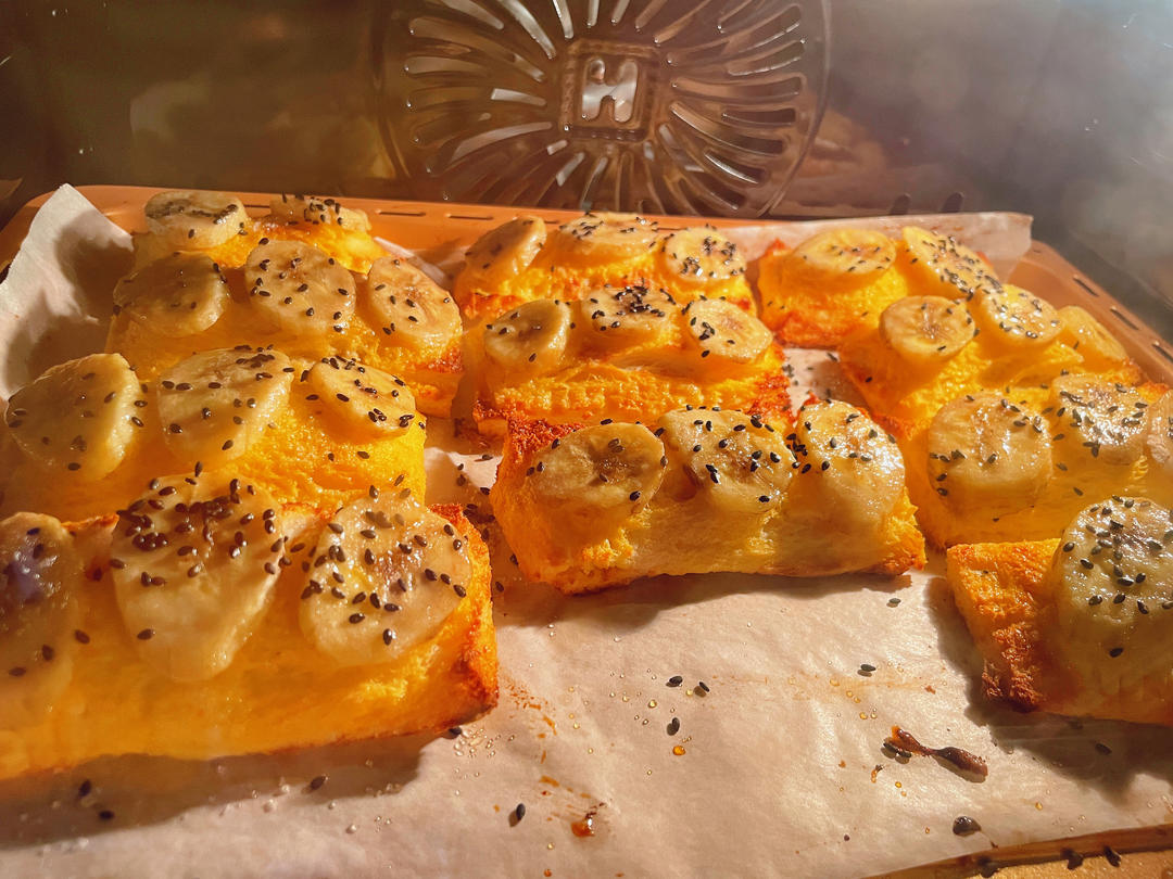 刷完蛋液铺香蕉刷黄油再撒点白沙糖