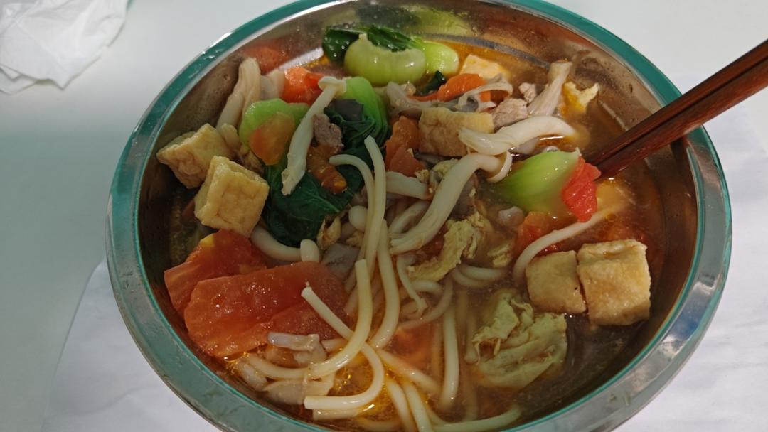 配菜:番茄、平菇、白玉菇、鸡蛋、小青菜、猪肉、油豆腐