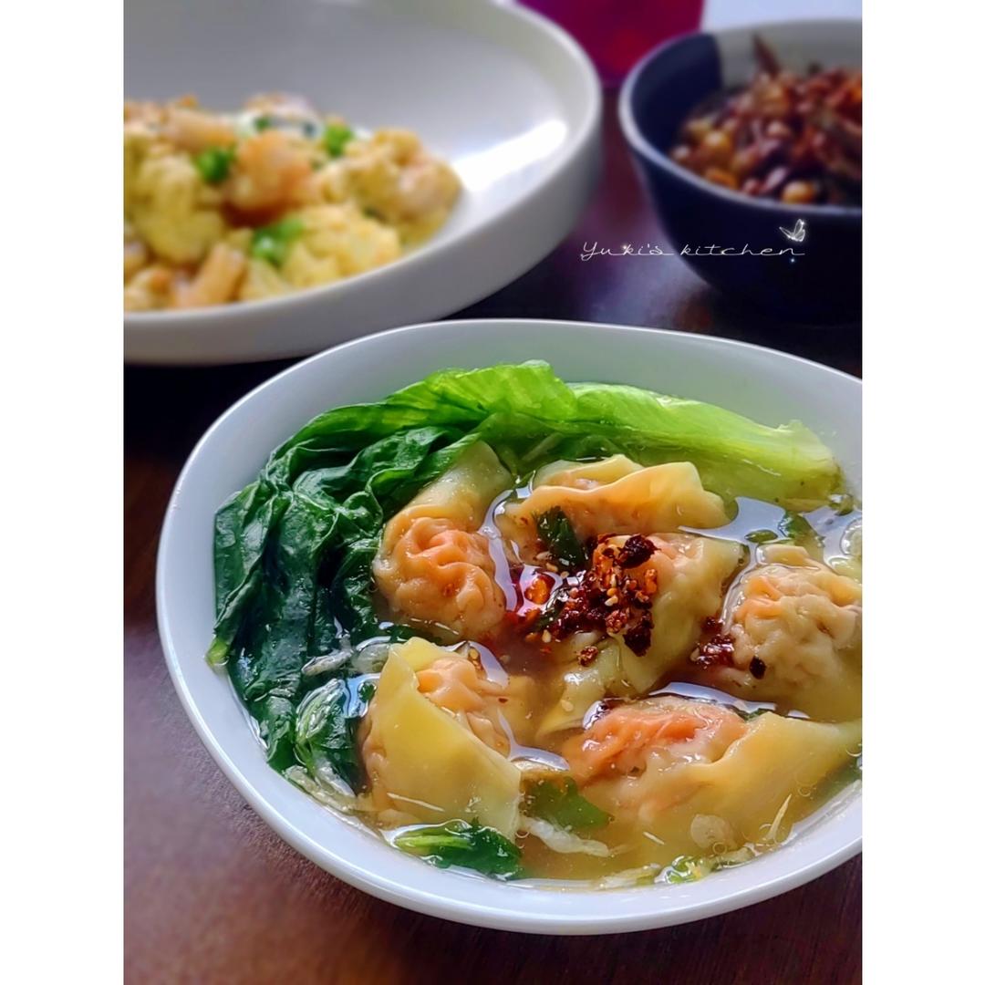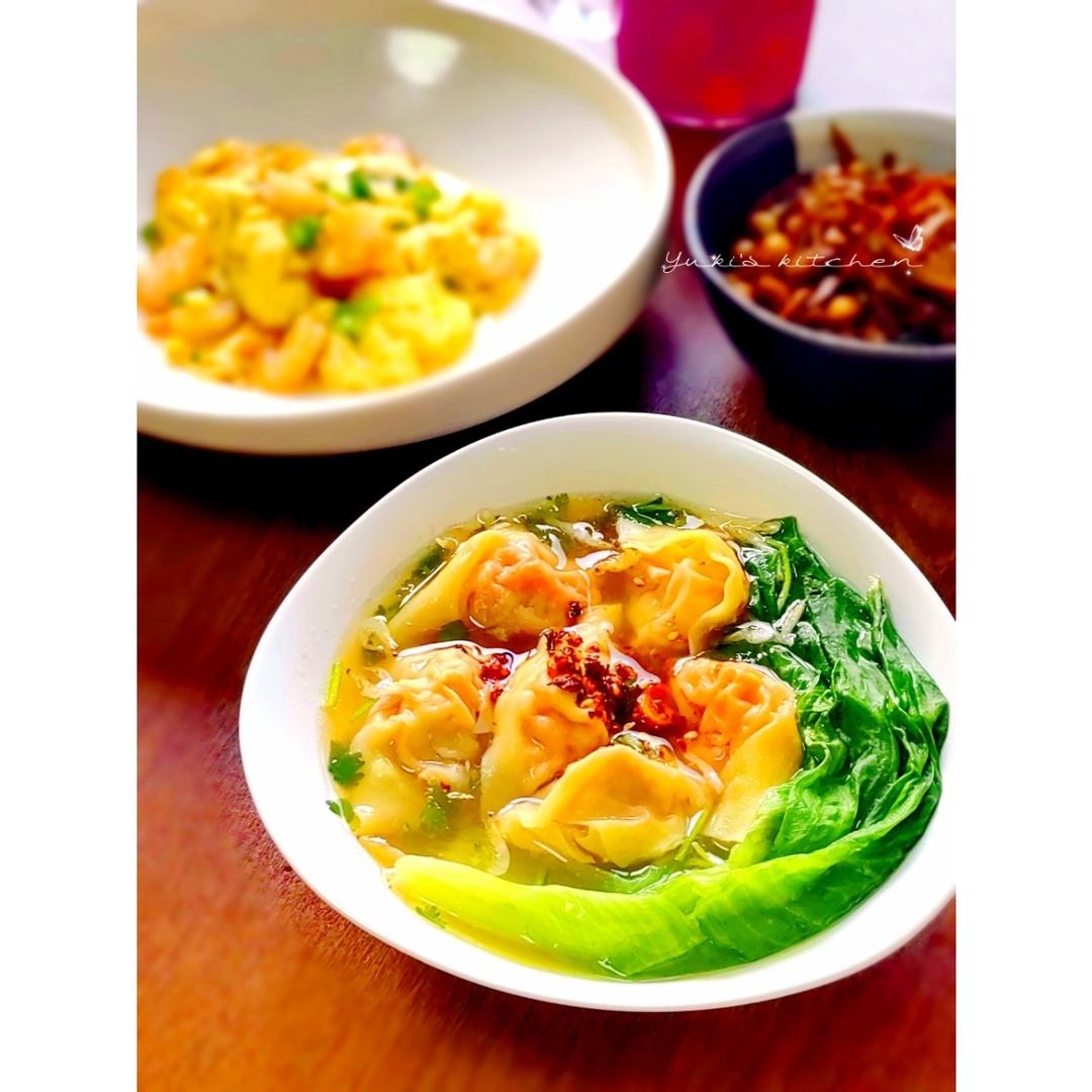 自己擀的馄饨皮,荠菜虾仁馅~~满满的馅