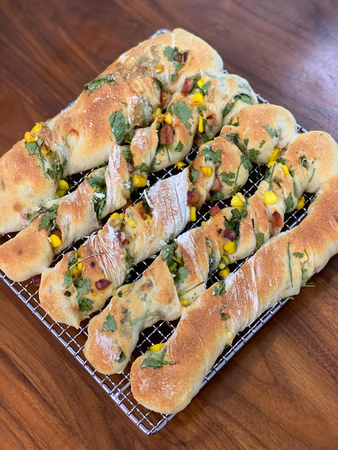 300克粉 80%水,香菜玉米烤肠狠狠的下😂