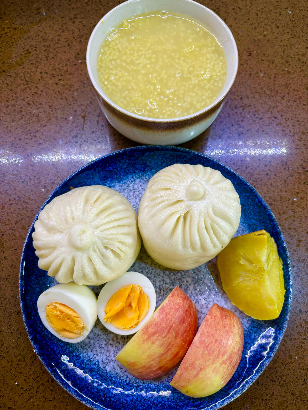 今日早餐:粽子➕南瓜、玉米➕荷包蛋➕白灼芦笋、清炒口蘑➕牛奶➕蓝莓。