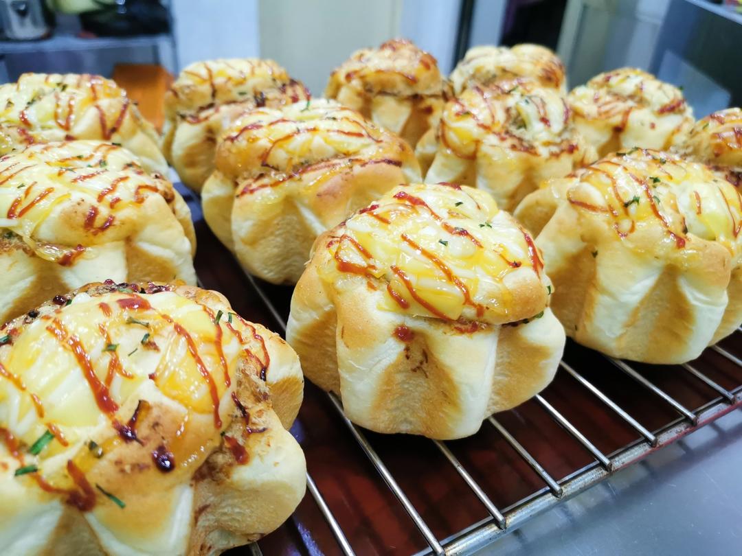 最爱的肉松面包,上150度下180度,22分钟,约95克的面团。