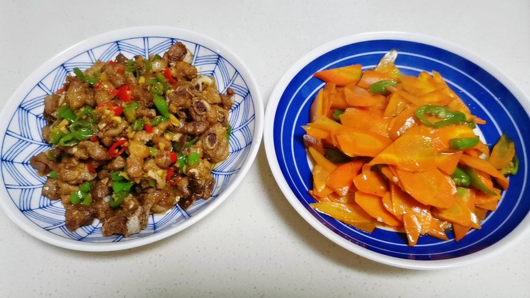 蒜香排骨+素炒红萝卜