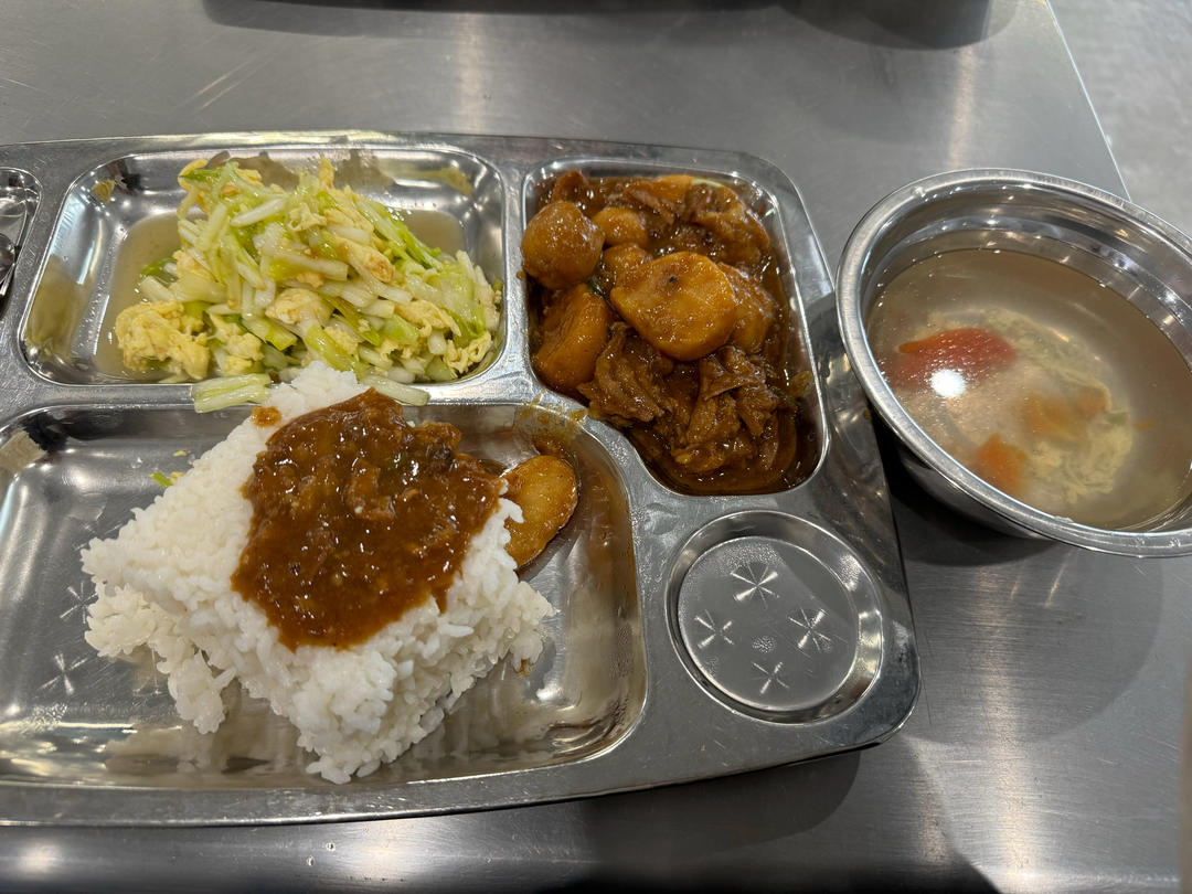 中午食堂阿姨打的不行啊 嘎嘎少 芋头烧鸭 只有一块鸭肉 😑