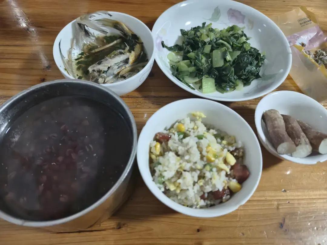 好久没在家蒸饭了,整一顿下饭的。小鲍鱼辣椒炒肉+鸡蛋抱豆腐,贡菜蕨菜双脆小菜