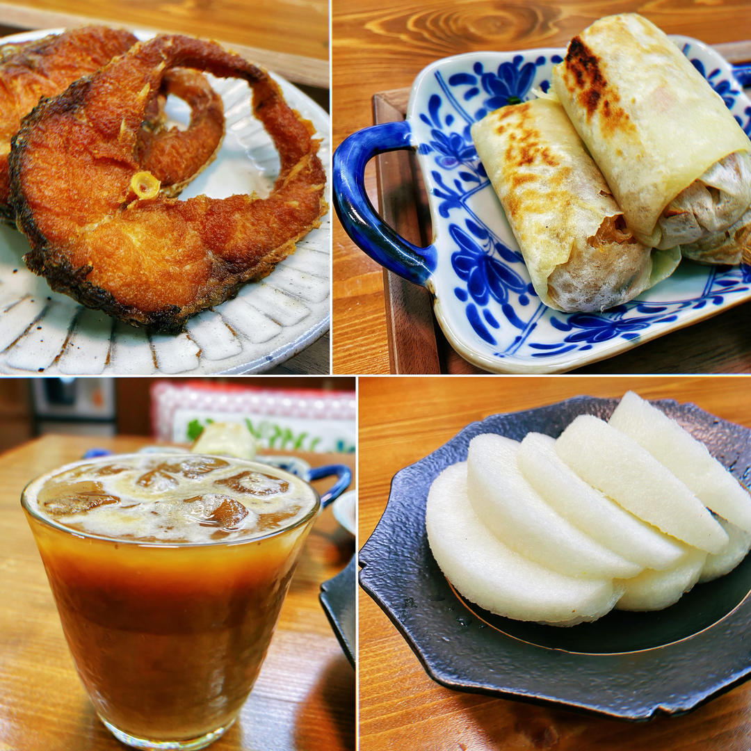 冰拿铁、麦焦筒、宁式熏鱼、秋月梨🍐