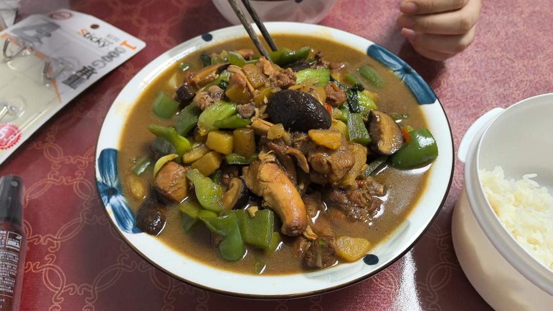 交个作业,4个鸡腿4个土豆2个大青椒5个小油菜,调料全双倍,4个鲜小米辣,没有干香菇了用的鲜的,非常好吃。懒得等了,煮了...