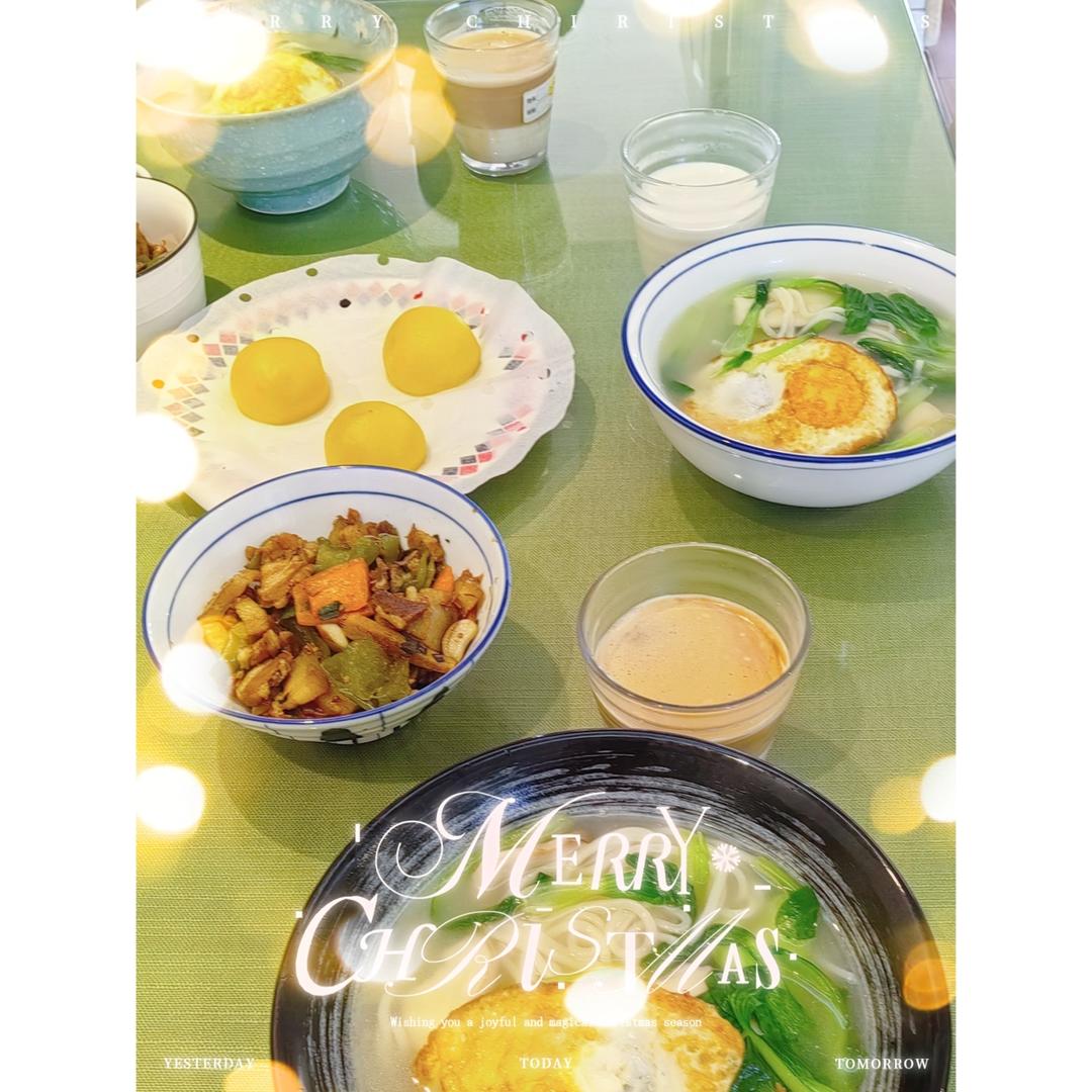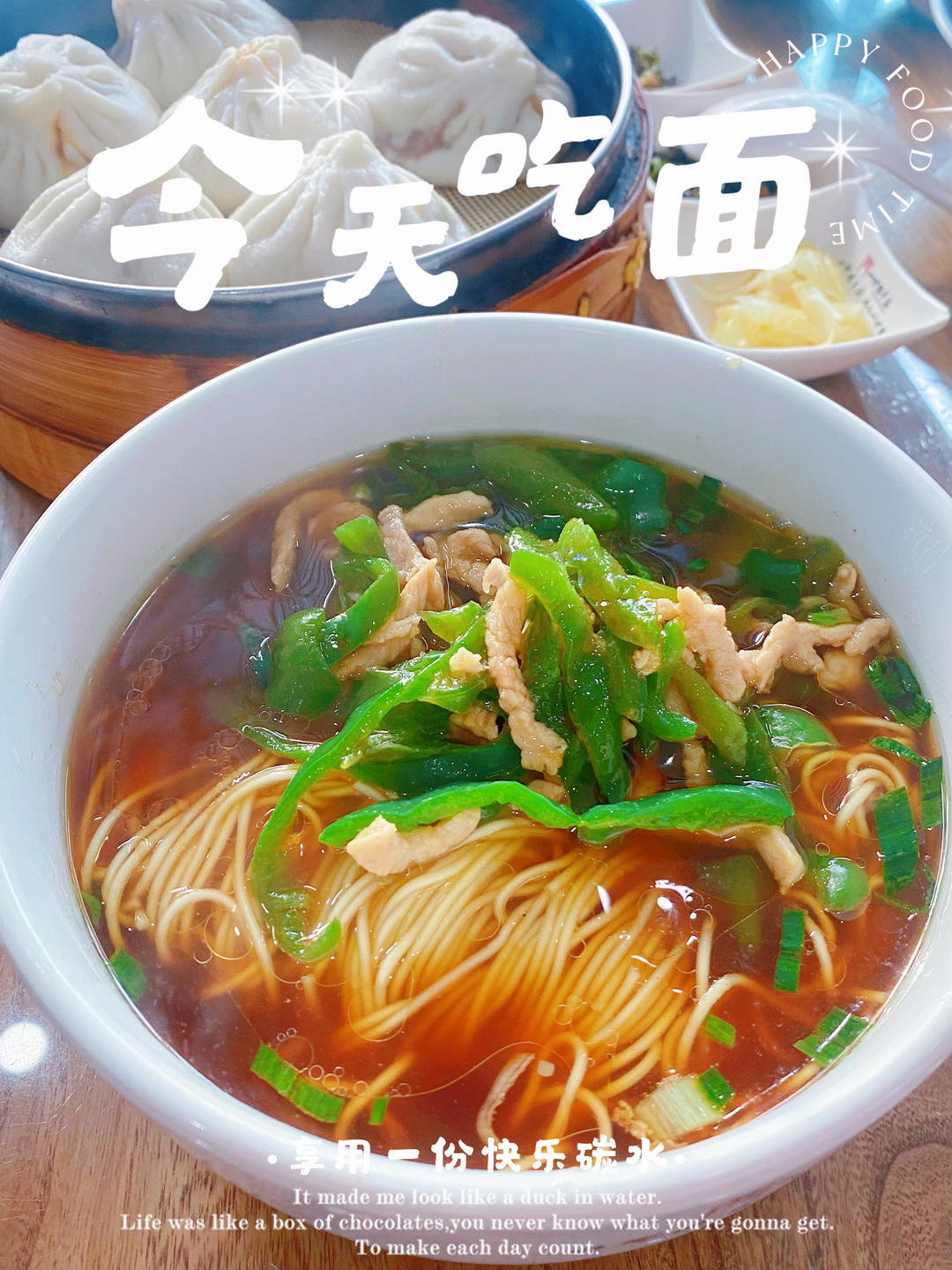 早:🍜青椒肉丝面+🍘小笼包✌🏻