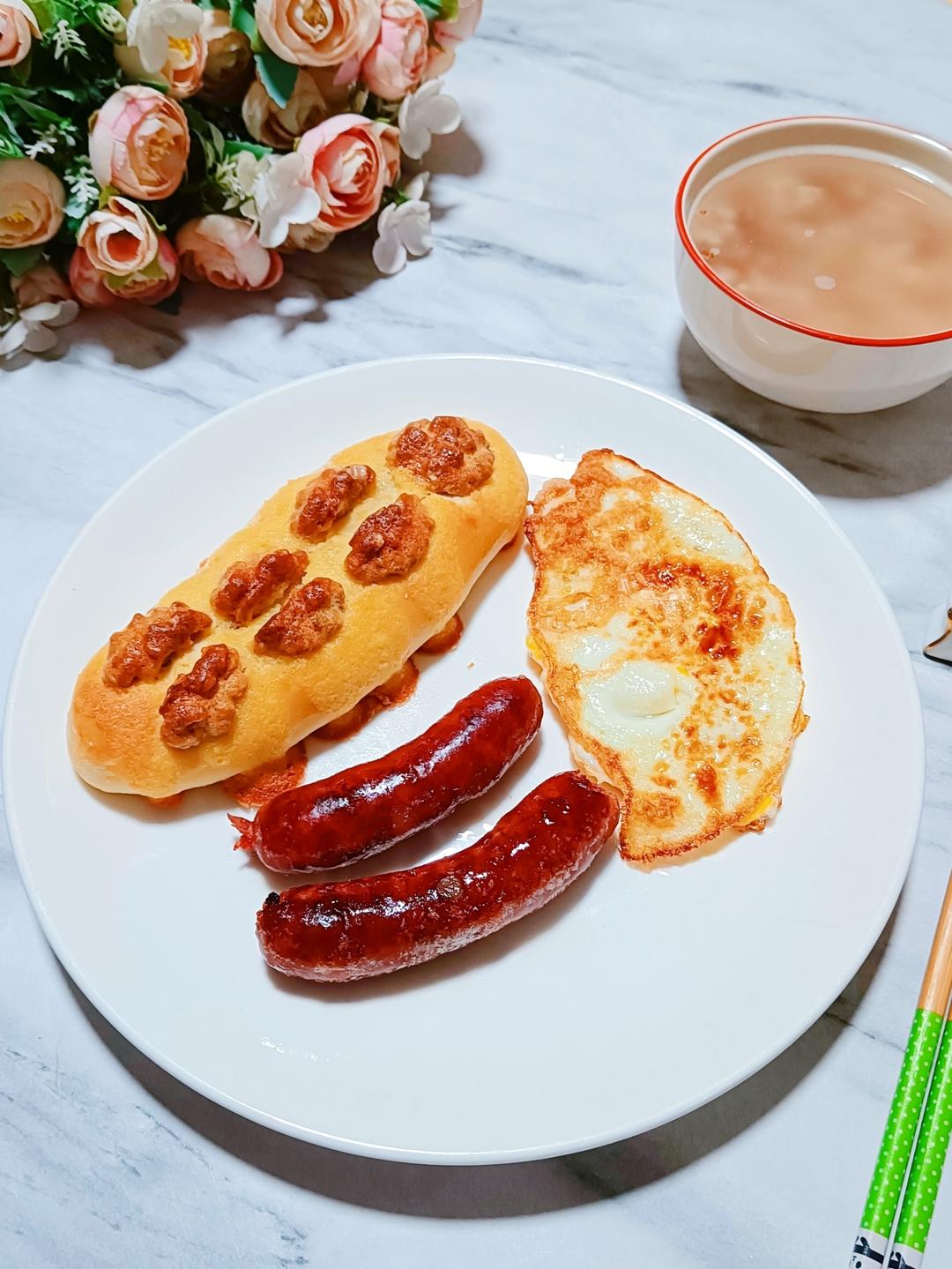 辰辰早餐~自制台湾烤肠,墨西哥酱核桃奶酪包,煎鸡蛋,燕麦