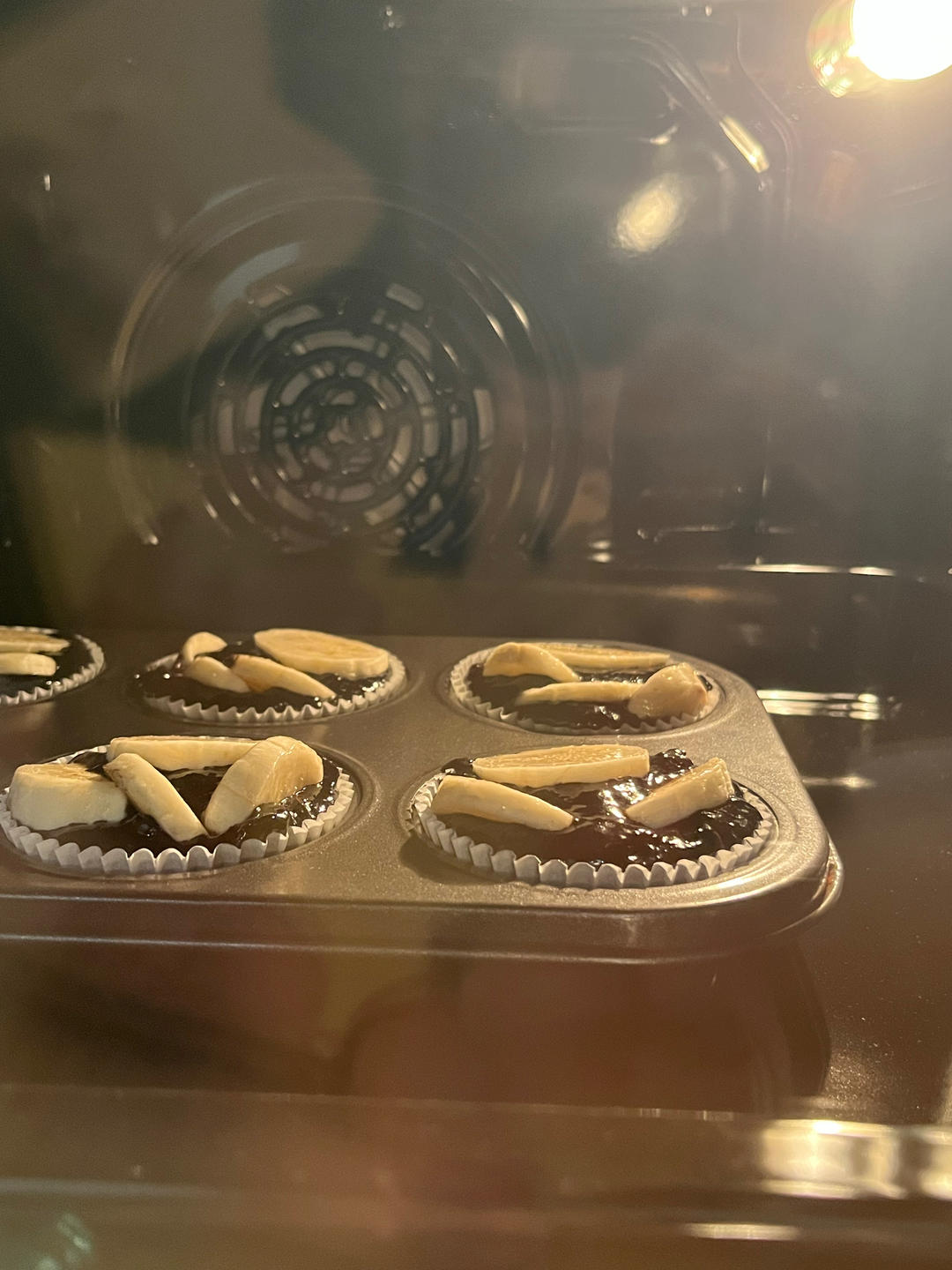 植物油配方胜在冷掉之后依然松软,整体口味不错的,惊喜是烤过的香蕉变成了软糖