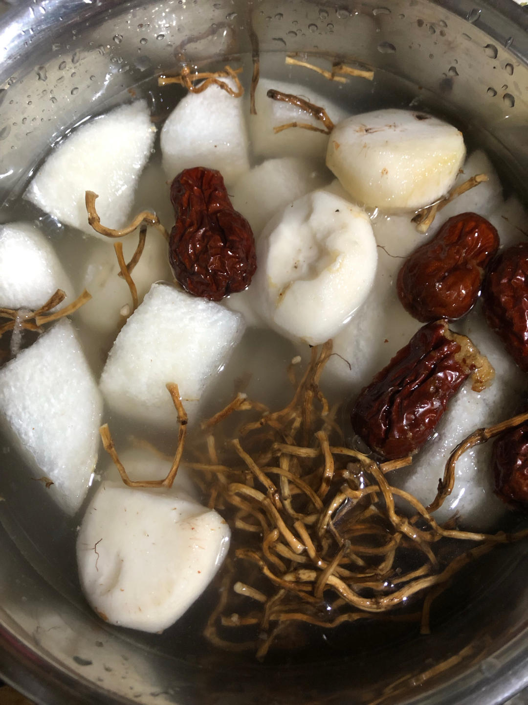 二宝有点咳嗽,用鱼腥草➕梨➕马蹄➕红枣➕冰糖煮水喝。