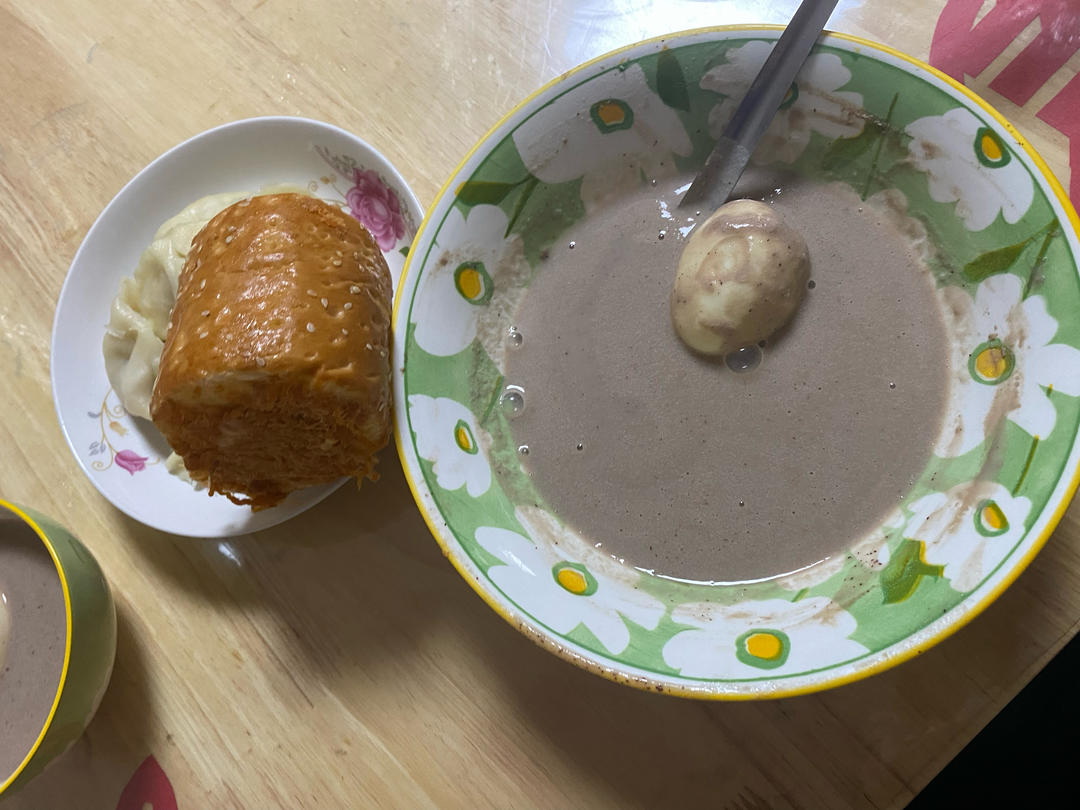 肉松面包,豆浆