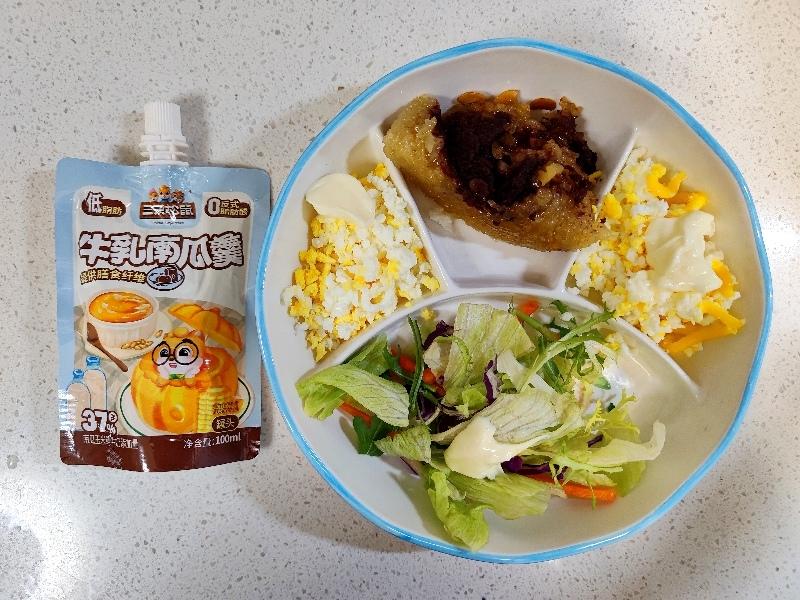 南瓜羹,八宝饭,鸡蛋蔬菜沙拉