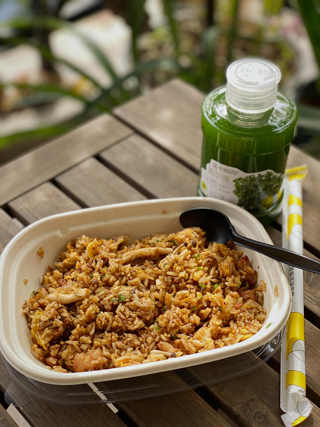 一个人也要好好吃饭!点个外卖套餐,黑松露鸡肉杂菌炒饭+青苹果羽衣纤体茶,挺好的👌
