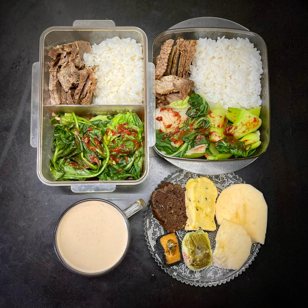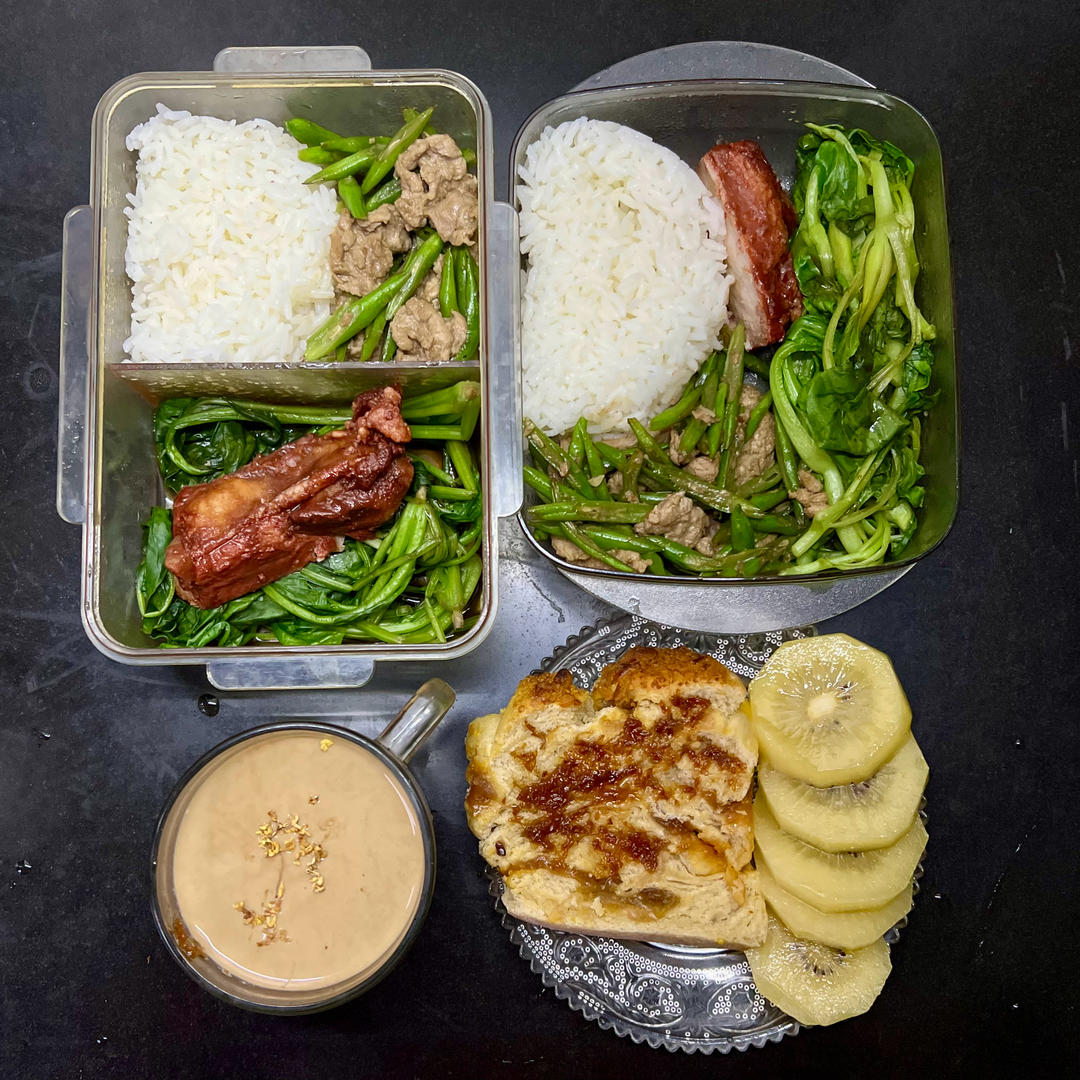 割裂的画风:偷懒的便当很像减脂餐,早点拼盘则是糖油混合物😂