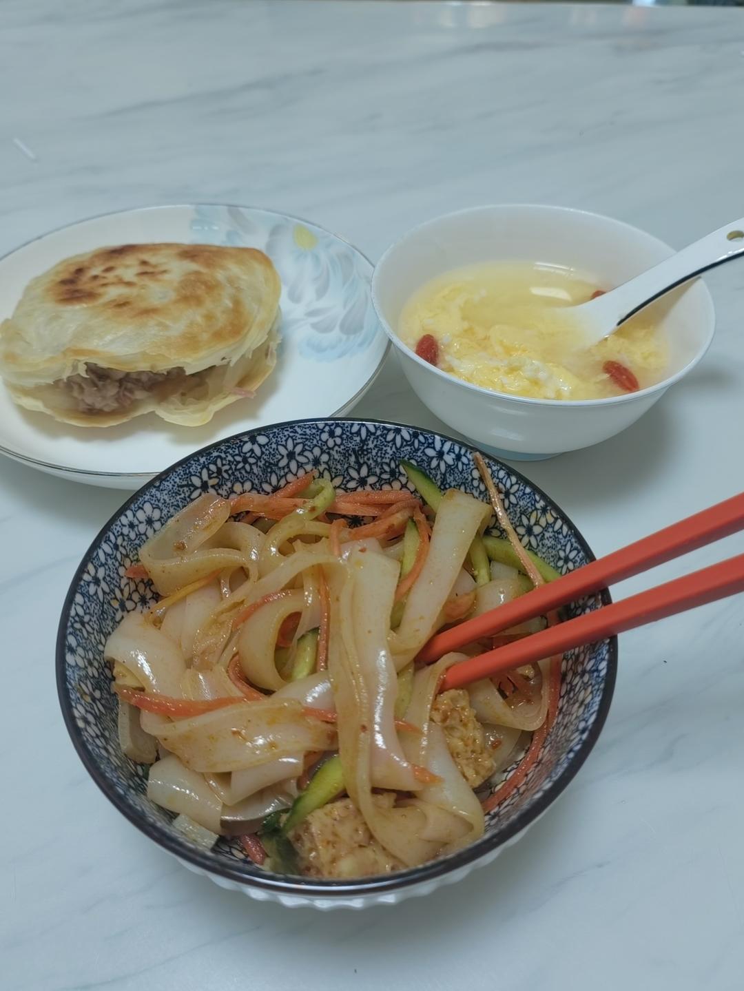 肉夹馍,擀面皮,醪糟鸡蛋汤。