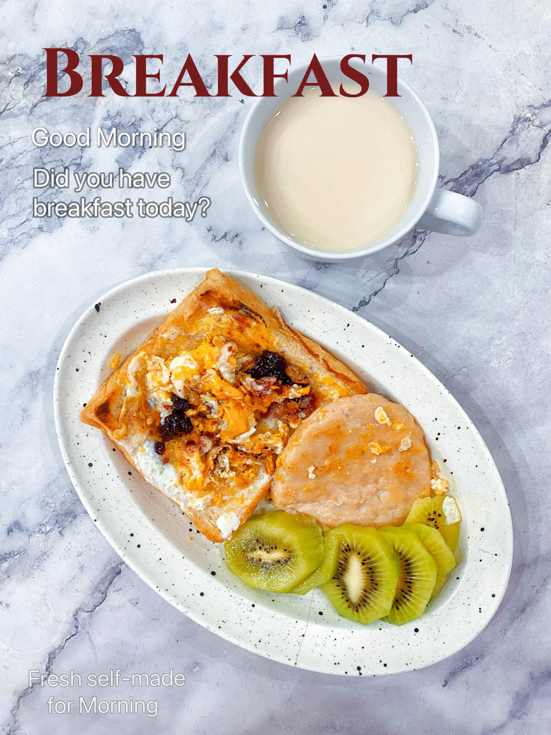 早:☕奶茶🥝🥪煎蛋三明治