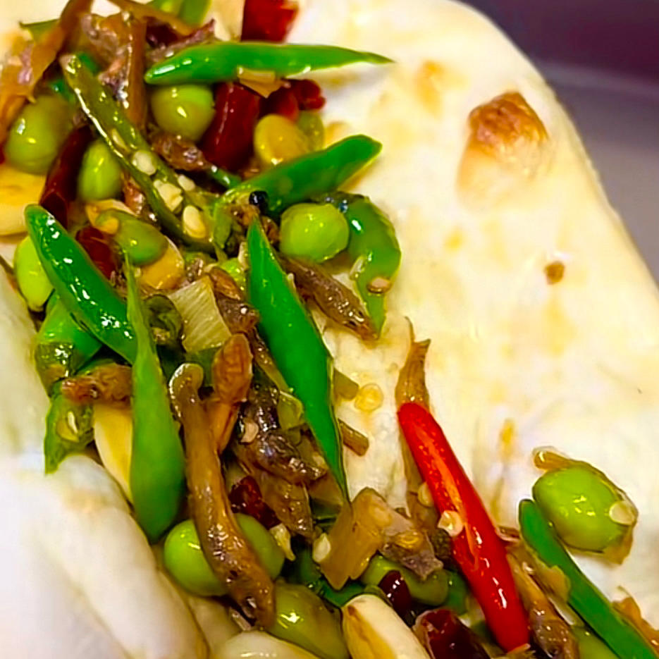 烤牌卷辣椒炒小鱼