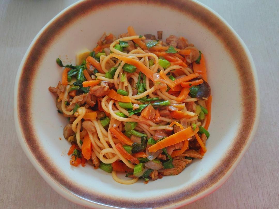 什锦蔬菜肉片炒面