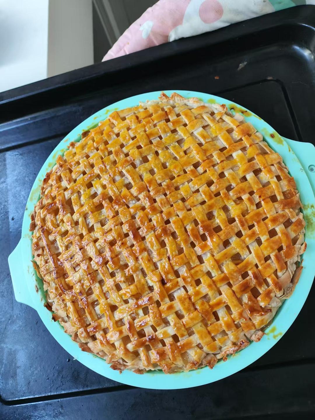交作业,用老师馅料的配方➕酥皮做的八寸苹果派,切了四个大苹果,馅料酸酸甜甜的
