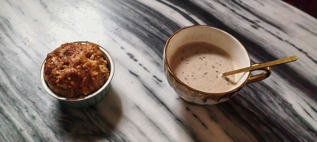 昨天的早饭,发面饼,超级超级好吃,用了椰子油和面,椰香飘飘的感脚。