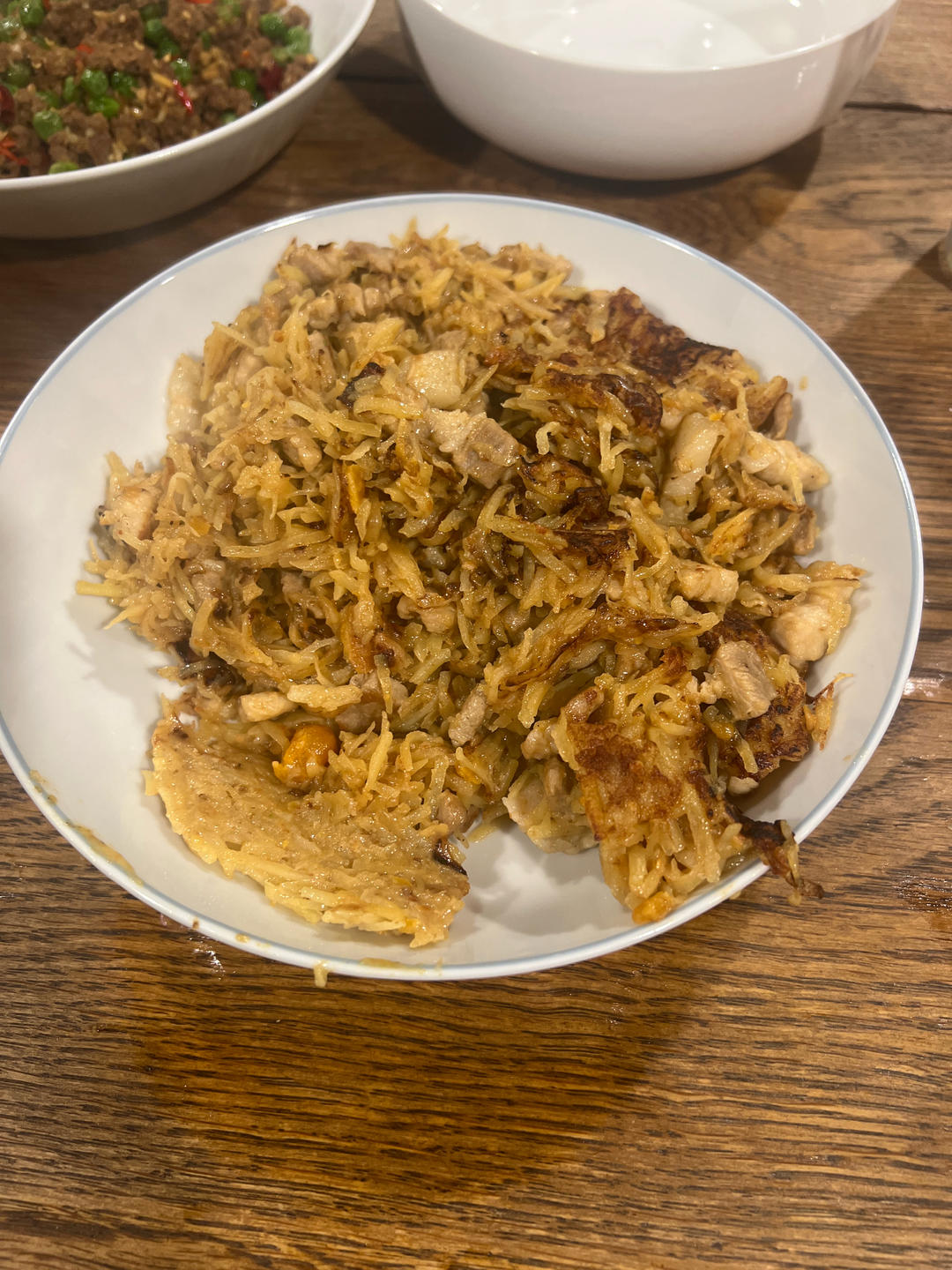 🍴晚餐: 韭菜鸡蛋饼+肉松大米...