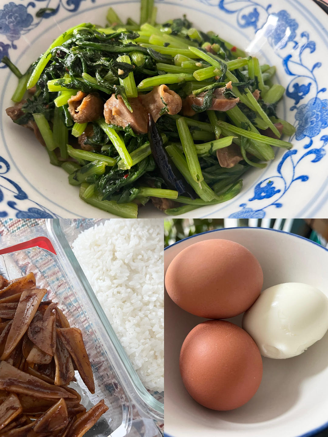 蒿子杆炒鸡胗,熟鸡脆骨,煮鸡蛋,蜂蜜豆浆