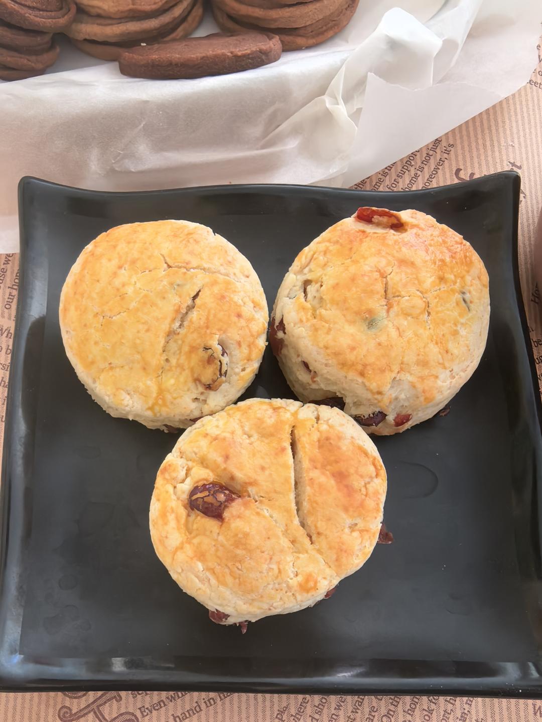 新尝试,刷了蛋黄,烤了30分钟怕不熟,模具6㎝比较大