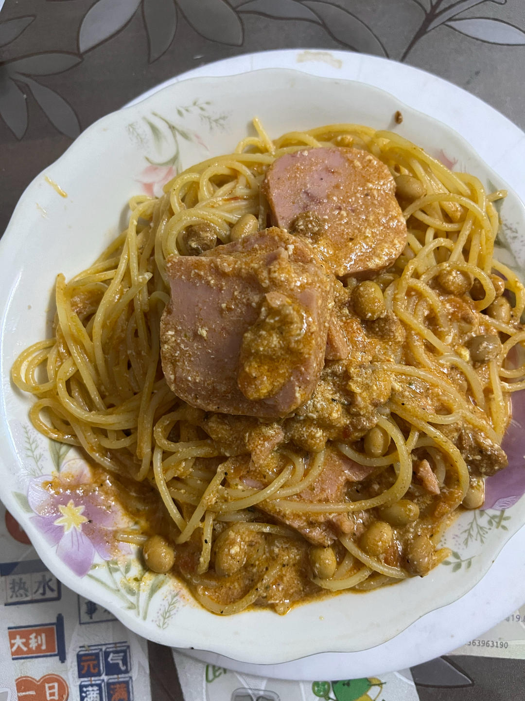 意粉➕午餐肉加茄汁黄豆