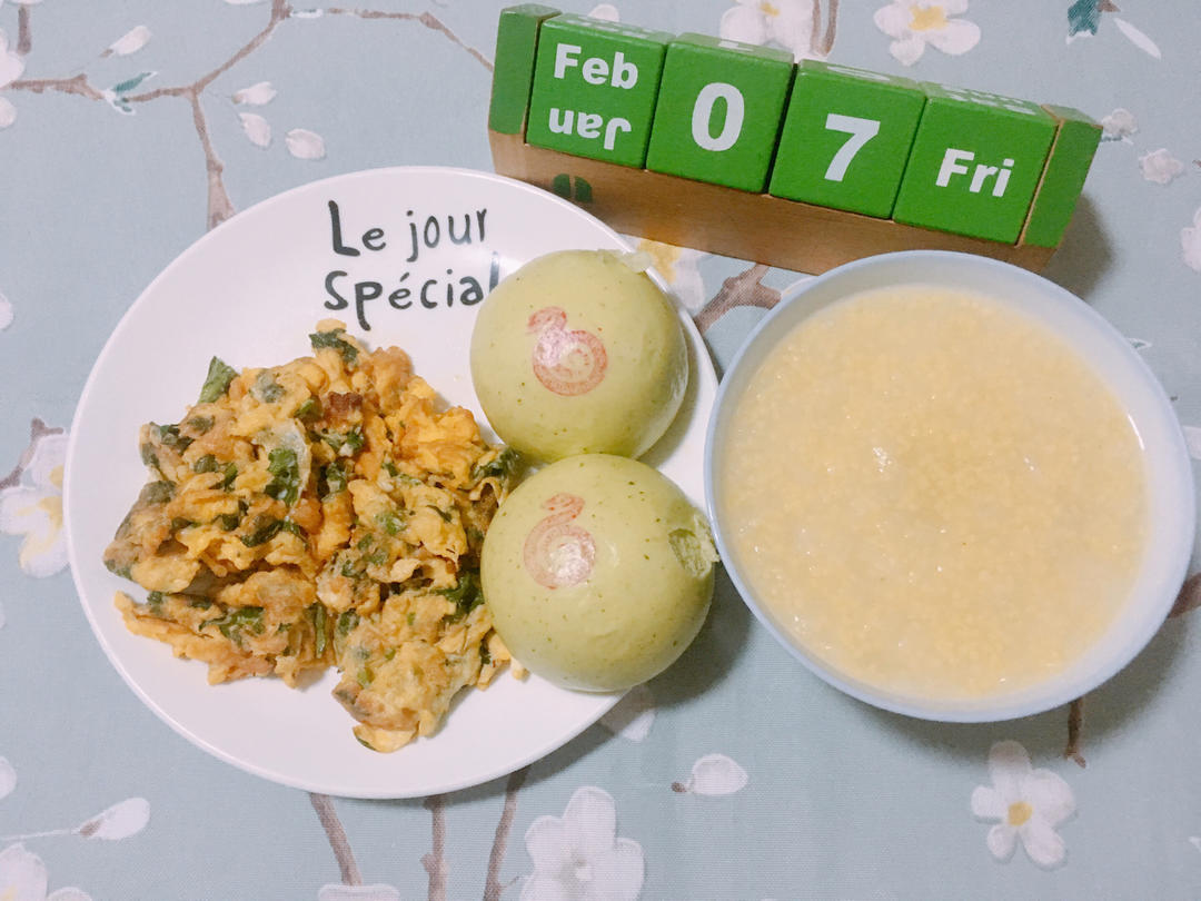 ㋁㏦放假第2️⃣6️⃣天 小龙🐉包加茼蒿炒鸡蛋配小米粥