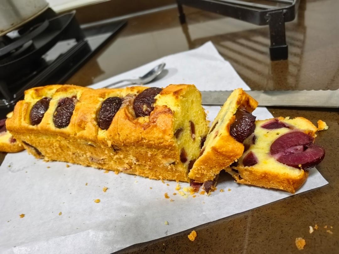 用了最长的磅蛋糕模具,加了少许20克酒渍樱桃,鲜果做蛋糕我还是蛮喜欢的😋