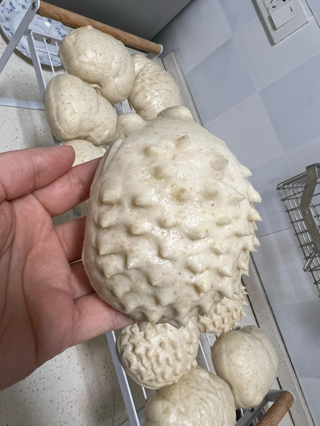 没有小的纸托,只有空气炸锅这种大个的,所以做了两个硕大无比的菠萝包...