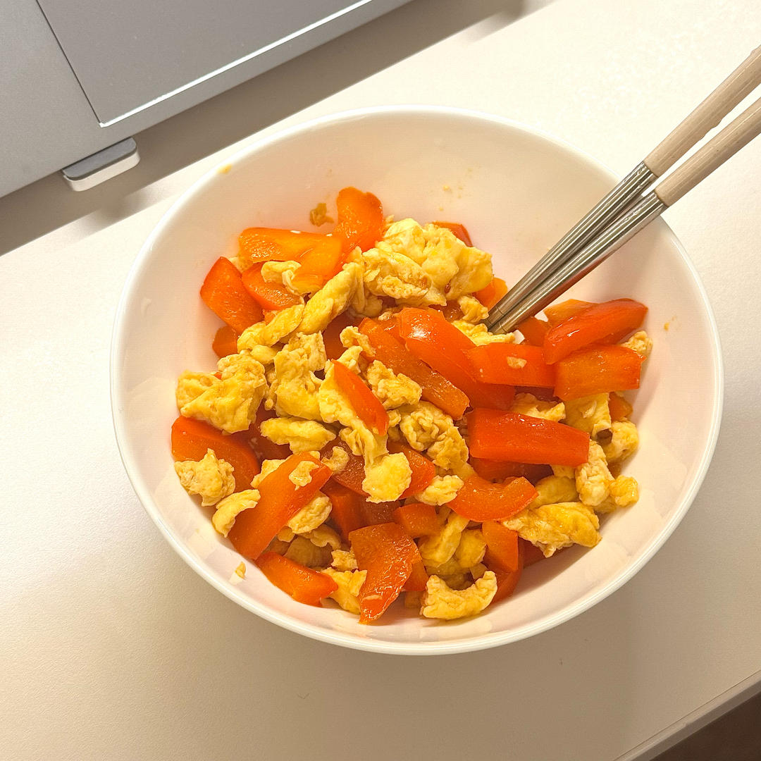 本来洗好了🫑但是切完红椒发现够了
