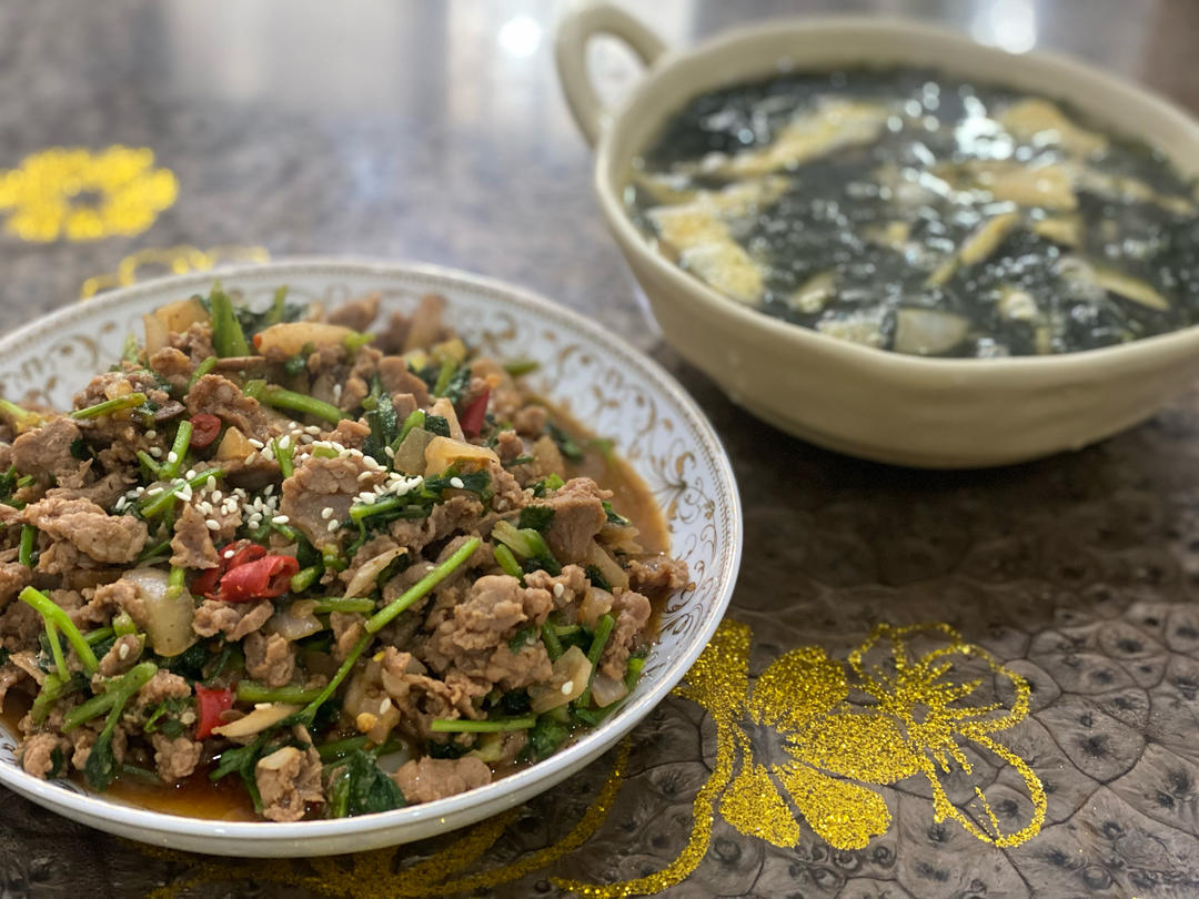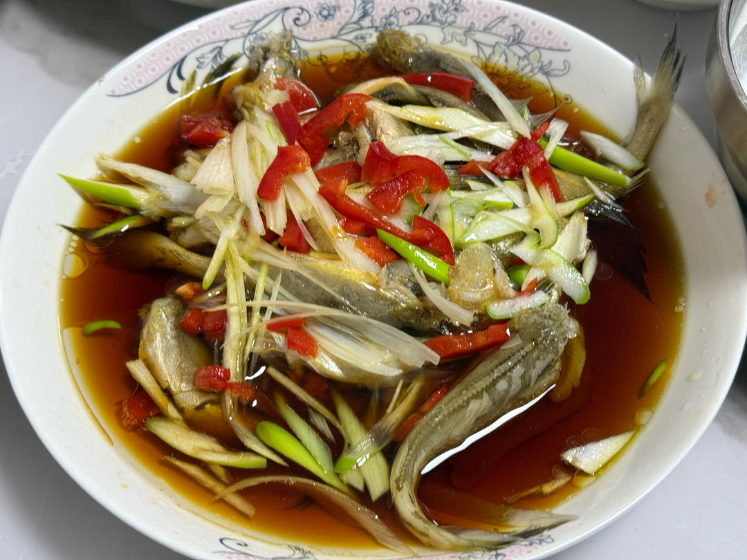 一个人搞定了四个菜,小黄鱼,芹菜,芹菜叶煎蛋,还有豌豆尖尖