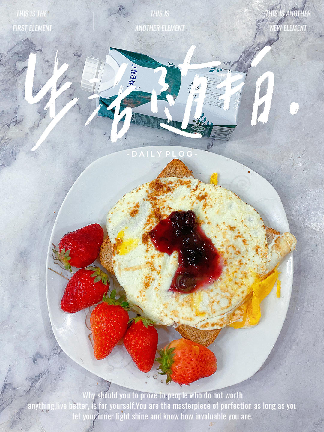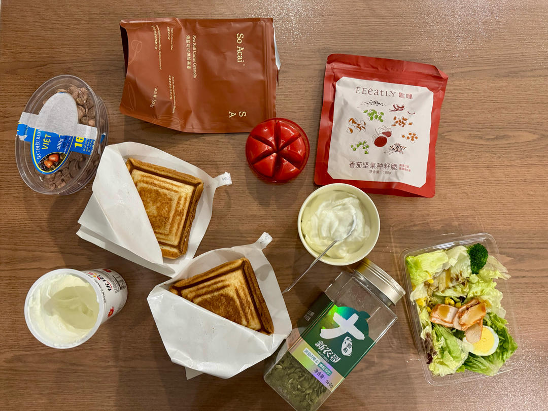 早:🥛牛奶+🥪蛋煎三明治+🍓