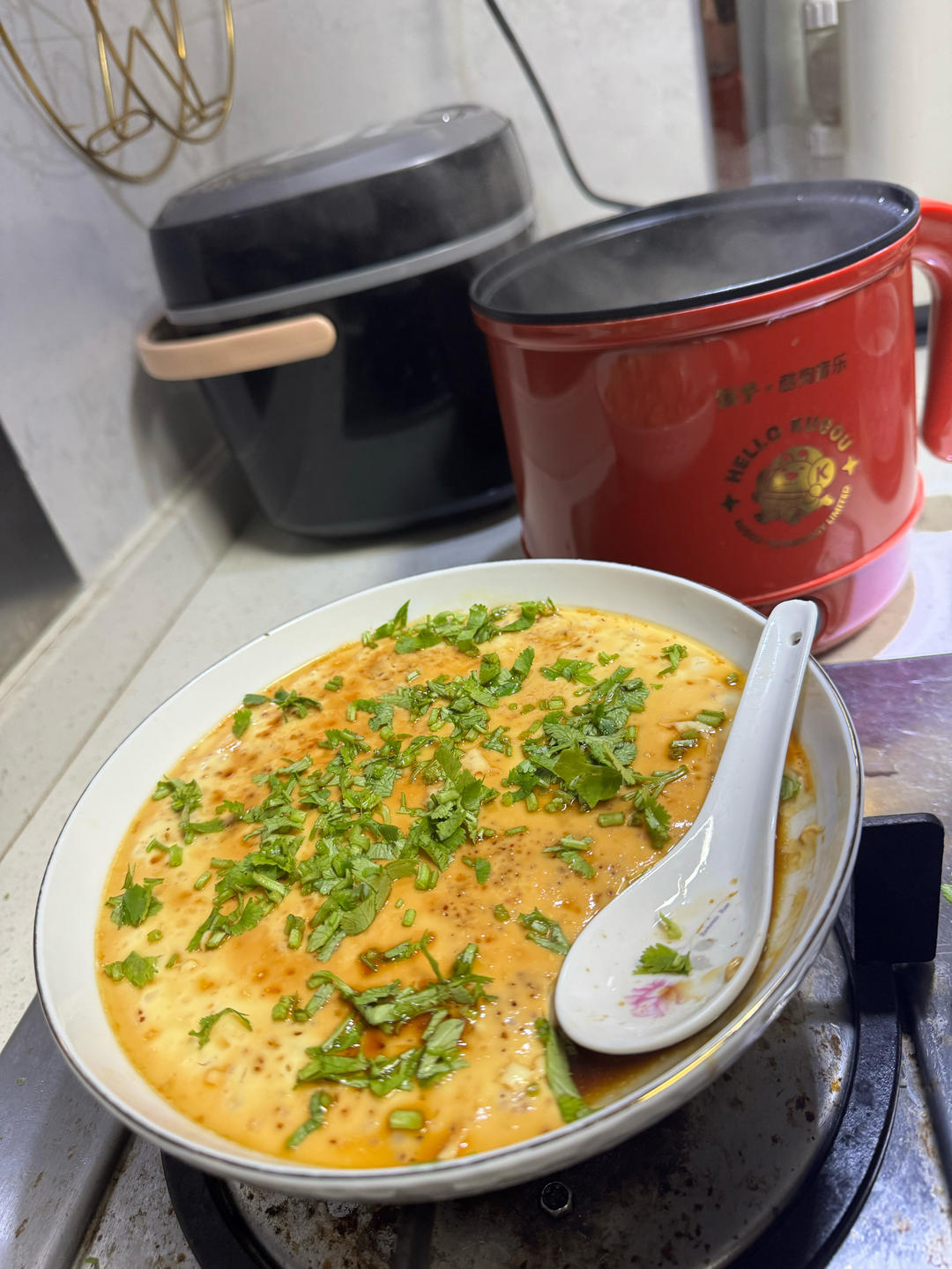 鸡蛋羹与墨鱼丸紫菜汤