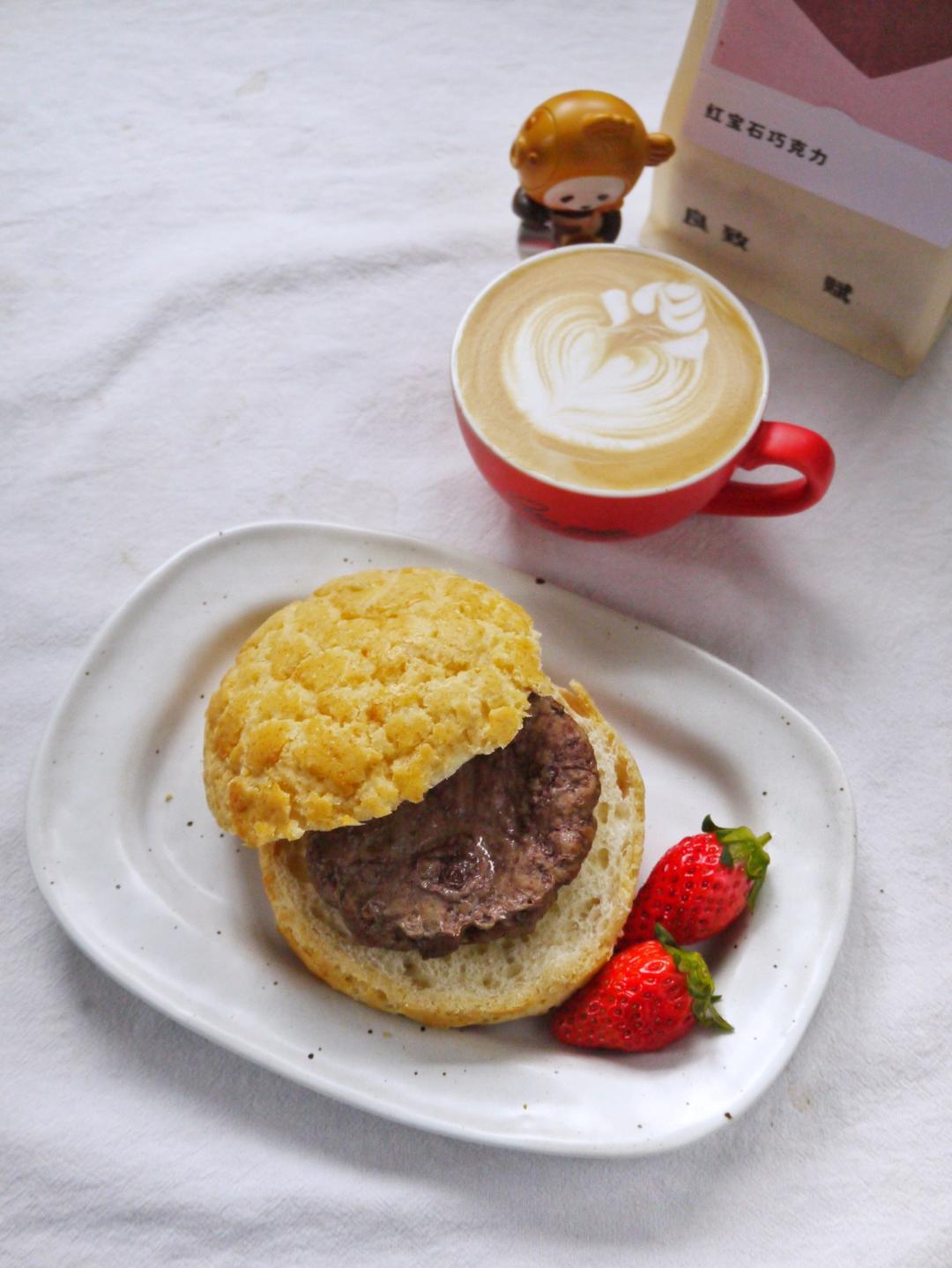 早安~~拿铁+牛排菠萝包+草莓~~